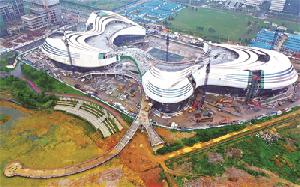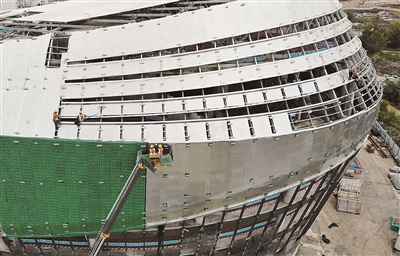 圖為工人們?cè)诹鴸|新區(qū)文化廣場(chǎng)外部進(jìn)行施工。近日,記者在柳東新區(qū)的文化廣場(chǎng)項(xiàng)目施工現(xiàn)場(chǎng)...