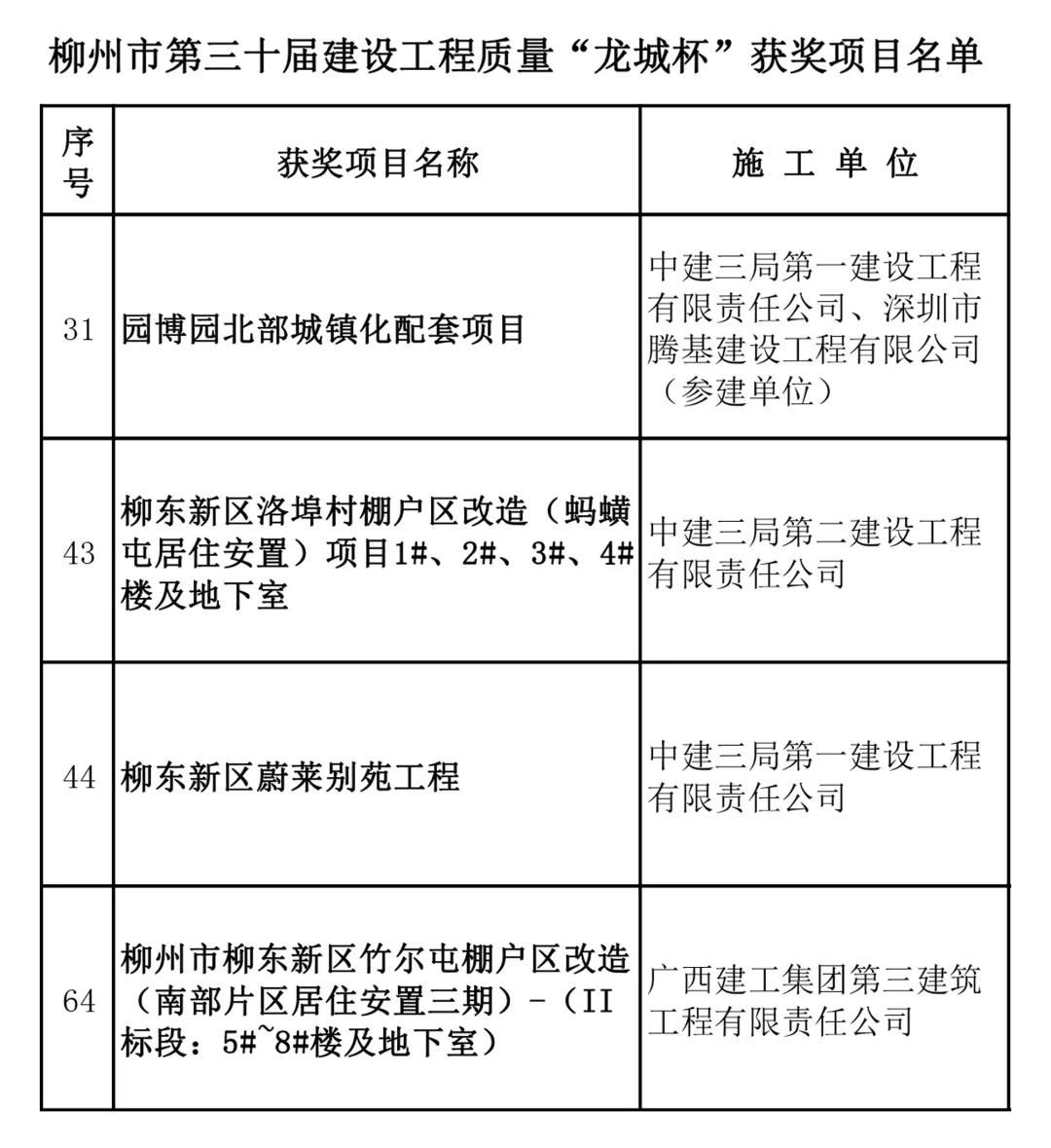 ▲柳州市第三十屆建設(shè)工程質(zhì)量“龍城杯”獲獎(jiǎng)名單截圖